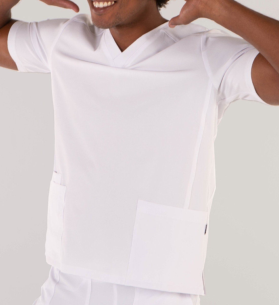 • Casacca a V da uomo a maniche corte realizzata in leggera e confortevole Microfibra 360 elasticizzata.