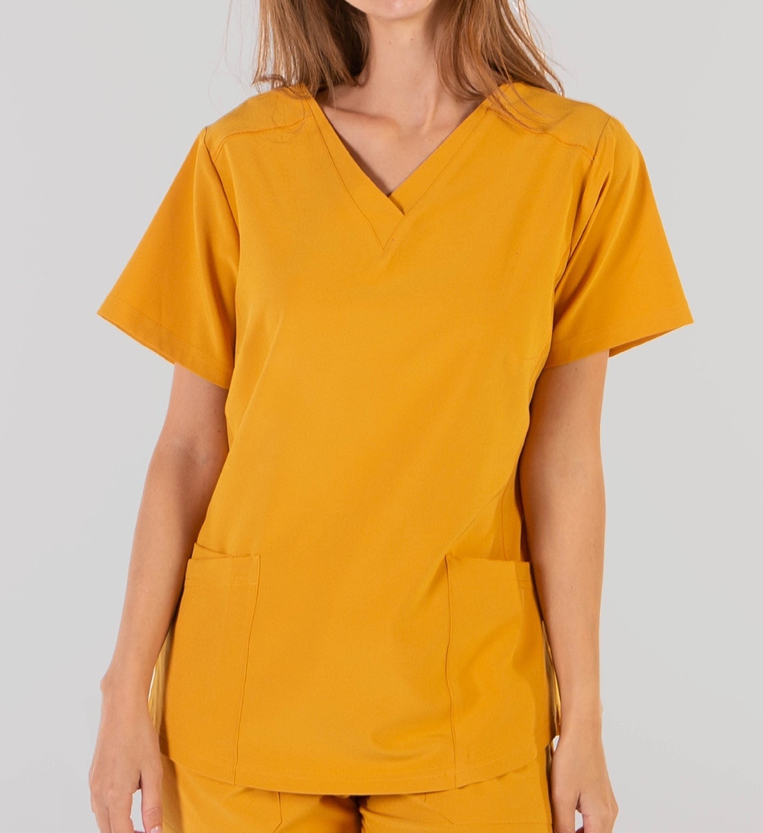 - Casacca a V da donna a maniche corte realizzata in leggera e confortevole Microfibra 360 elasticizzata.