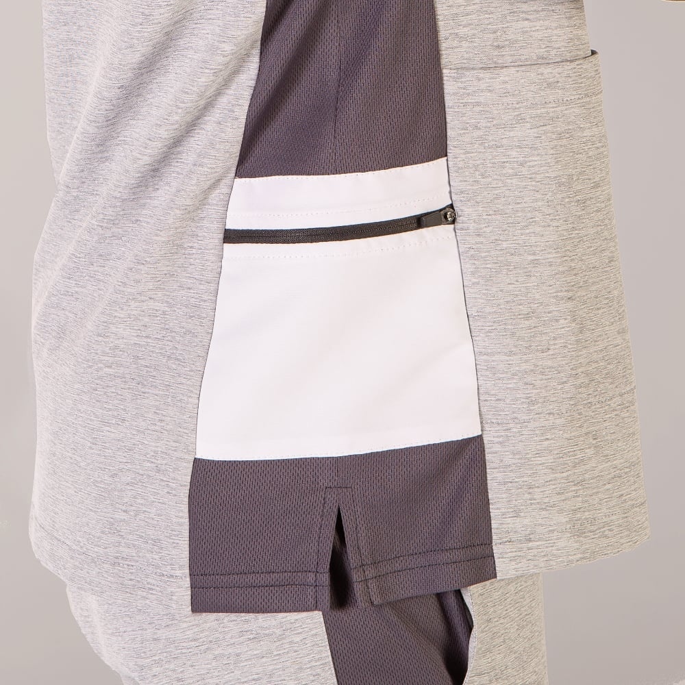 Casacca a V da donna a maniche corte bicolore realizzata in leggera e confortevole Microfibra 360 elasticizzata. Abbinato a dettagli bianchi su collo, spalle e fianchi. Inserti in tessuto traspirante Aerosilver su fianchi e collo 2 tasche in basso ed una con cerniera sul lato destro. Spacchetti laterali per un'ottima libertà nei movimenti. Cuciture...