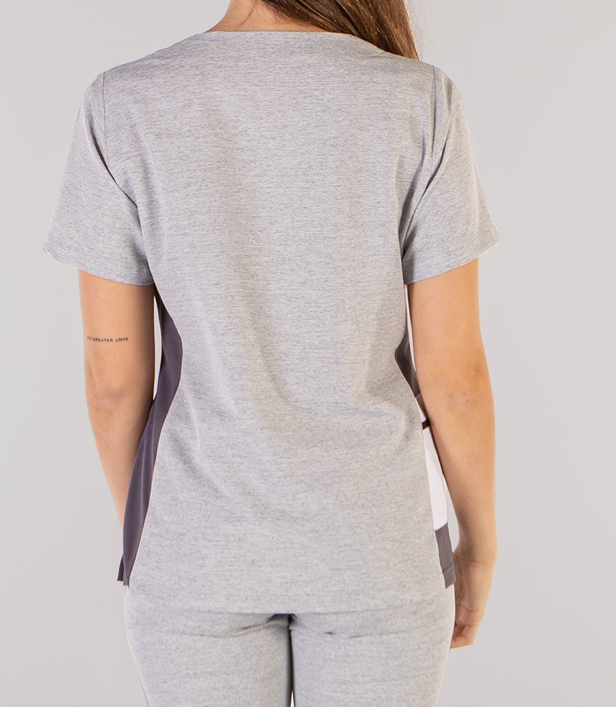 - Casacca a V da donna a maniche corte bicolore realizzata in leggera e confortevole Microfibra 360 elasticizzata.