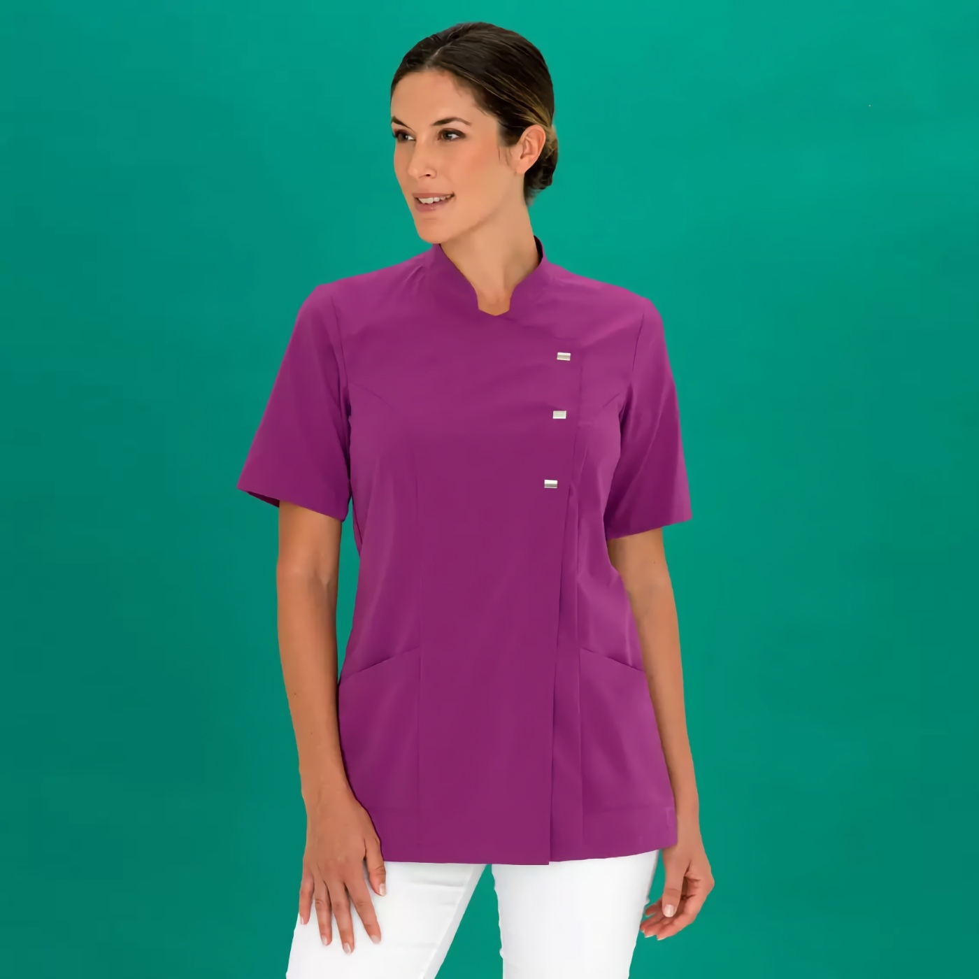 • Casacca donna a maniche corte con elegante scollo coreano, realizzata nell'innovativa microfibra ultraleggera G-Tech Pro.
